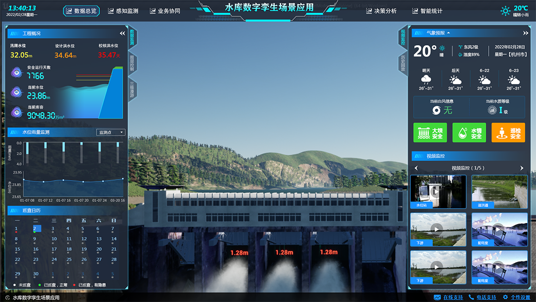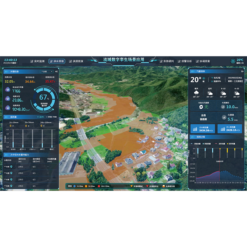水利數字孿生場景應用依托感知集成實時狀態、數據治理、GIS及BIM圖形引擎、水利專業及智能識別模型等建立強大的數字孿生底板,對物理水利工程全要素以及管理過程進行數字化映射,實現可視化場景呈現,賦能水庫、水閘、泵站、灌區、海塘、流域等水利場景管理,構建具有預報、預警、預演、預案功能的智慧水利體系。